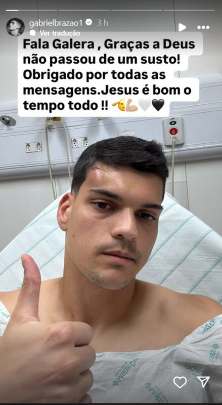 Apesar do susto, o arqueiro passa bem. O Peixe atualizou o estado de saúde de Brazão, que foi encaminhado ao hospital logo na saída da Arena MRV.
