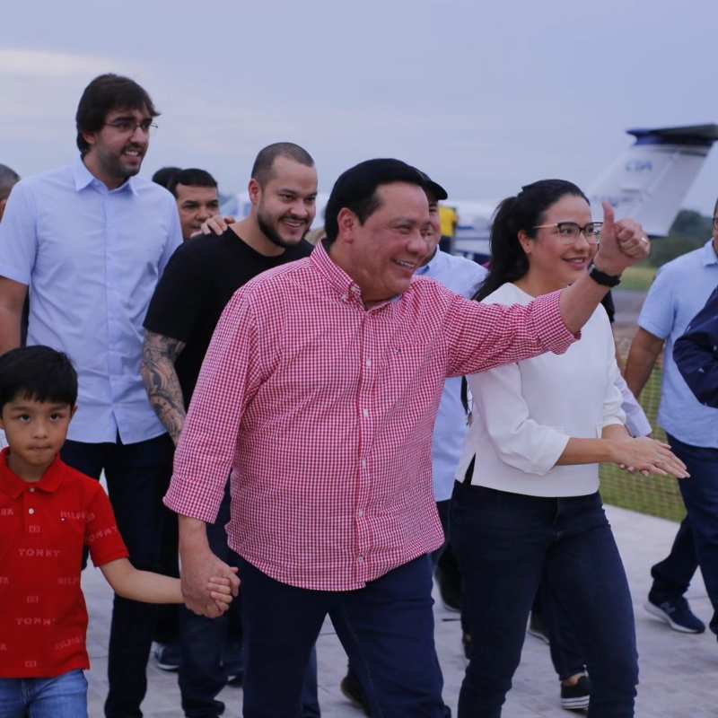 Adail Pinheiro estava acompanhado do deputado Thiago Abrahim, dos filhos Adail Filho e Mayara Pinheiro e foi recepcionado pelo prefeito Keitton Pinheiro, vereadores e secretários municipais.