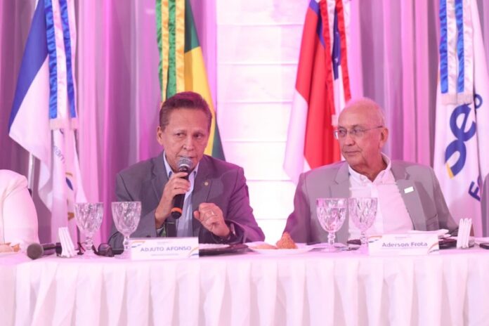 O deputado Adjuto Afonso (União Brasil) participou, nesta quinta-feira (09/10), da 10ª Reunião Ordinária de Diretoria da Federação do Comércio de Bens, Serviços e Turismo do Estado do Amazonas (Fecomércio-AM), a convite do presidente da entidade, Aderson Frota.