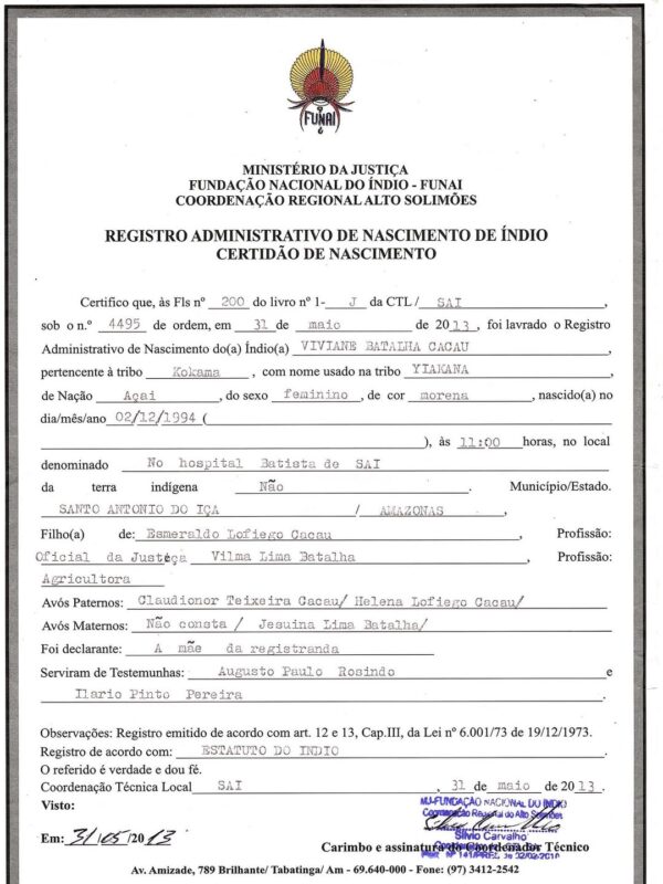 “Sou indígena da etnia Kokama, nascida e criada em território indígena, conforme comprova meu RANI. Diferentemente da denunciante, minha trajetória está enraizada nas comunidades do Alto Solimões. Tentar deslegitimar minha origem é uma ofensa à minha história e às comunidades que represento”, afirmou na nota.