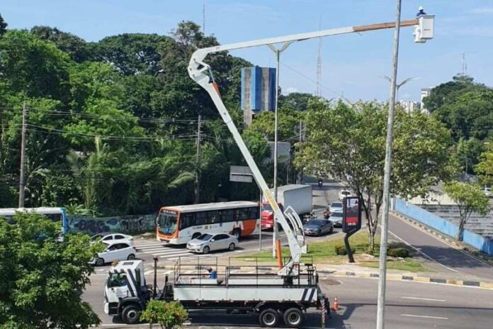 Técnicos da Agência Reguladora dos Serviços Públicos Delegados do Município de Manaus (Ageman), da Prefeitura de Manaus, estão fiscalizando a substituição de luminárias de LED nos principais corredores viários da cidade. O trabalho está ocorrendo durante o dia e também no período da noite.