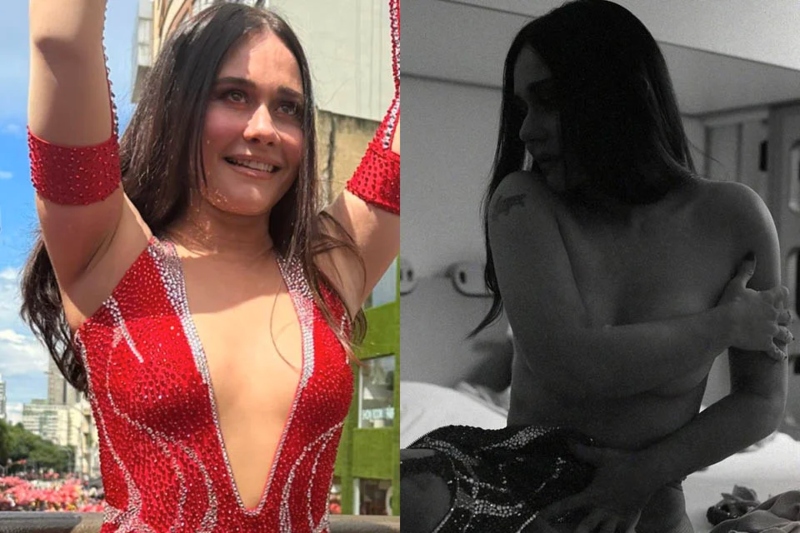 Alessandra Negrini surpreendeu seguidores ao publicar uma foto nua antes de desfilar no bloco Acadêmicos do Baixo Augusta, em São Paulo, neste domingo (12/2).