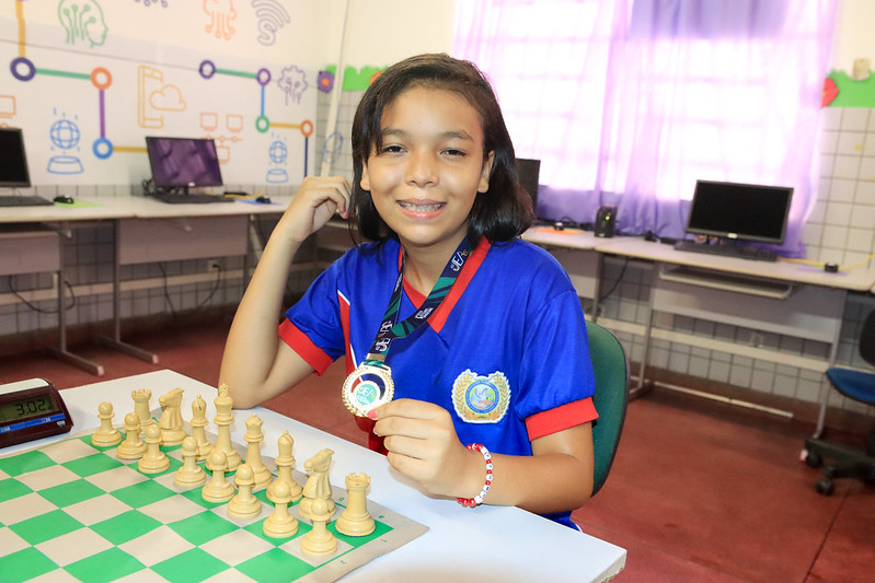 A aluna do 7º ano vespertino, Kathariny Victoria da Silva Lima, 13, da escola municipal Themístocles Pinheiro Gadelha, da Prefeitura de Manaus, localizada no bairro Jorge Teixeira, na zona Leste, foi a grande campeã na modalidade de xadrez infantil feminino, da 43ª edição dos Jogos Escolares do Amazonas (JEAs). Para chegar ao título, a estudante da rede municipal de ensino teve que superar seis enxadristas nos jogos. Com a conquista, ela garantiu vaga nos Jogos Escolares Brasileiros (JEBs), previstos para setembro deste ano, no Rio de Janeiro (RJ).