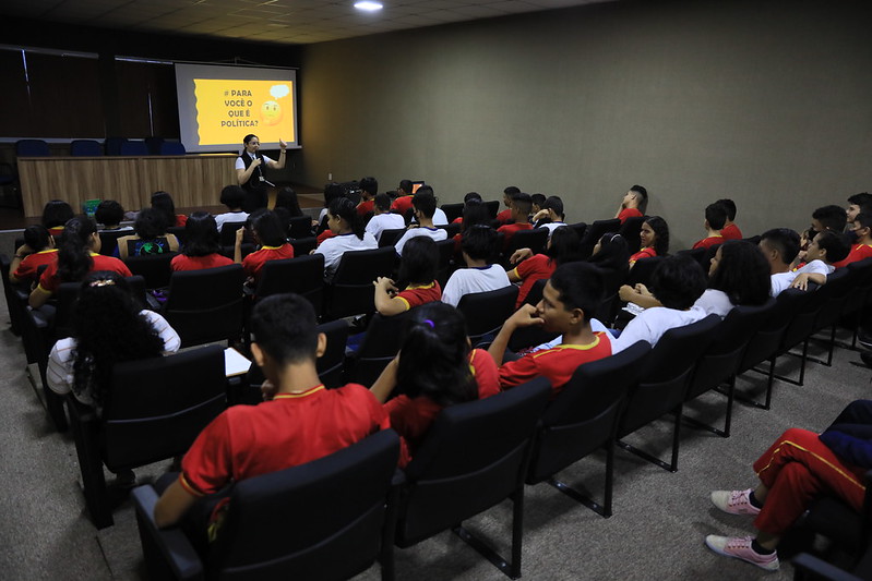 Os 57 alunos participaram de palestra do programa “Conhecendo o Legislativo”, realizado pela gerência de Educação Cidadã. A gerente pedagógica Paloma Chaves foi a palestrante e discorreu sobre cidadania, informando sobre o funcionamento do sistema político; direitos e deveres dos cidadãos e importância do voto consciente.