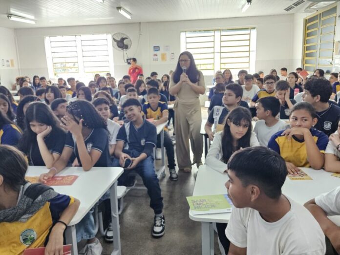 Aproximadamente 200 alunos, do 7º ano do ensino fundamental, da escola municipal Ana Mota Braga, da Prefeitura de Manaus , localizada no bairro Petrópolis, participaram, na manhã desta sexta-feira, 13/6, de uma palestra com a temática do Estatuto da Criança e Adolescente (ECA). A ação faz parte do projeto “Esmam nas escolas”, uma parceria da Secretaria Municipal de Educação (Semed), por meio do Núcleo de Parcerias Institucionais (NUP), com o Tribunal de Justiça do Estado do Amazonas (TJ-AM), por meio da Escola Superior da Magistratura do Amazonas (Esmam).