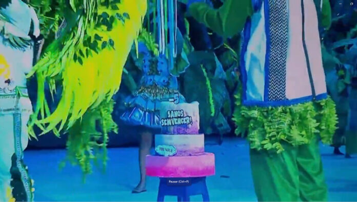 Em um dos trechos de sua performance, Caetano levou à arena um bolo cenográfico e ironizou o fato de o boi da Baixa do São José não vencer o festival há cinco edições. Em tom de sátira, o item 6 do Touro Negro cantou: