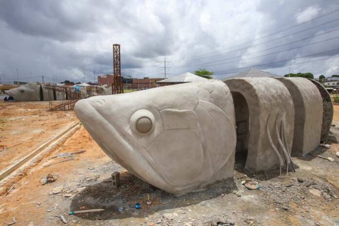 Os peixes amazônicos e as plantas aquáticas do cenário da área molhada da segunda etapa do parque Amazonino Mendes, em construção pela Prefeitura de Manaus, estão na fase de conclusão dos trabalhos artísticos em cimento das esculturas. Ali, estão o pirarucu, aruanã e tucunaré, por exemplo.