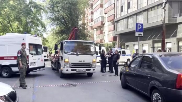 Dessas vítimas, 13 ficaram feridas, sendo duas gravemente, quando um drone atingiu um prédio de apartamentos na cidade de Rostov-on-Don, no sul da Rússia, informou o governador regional em exercício.