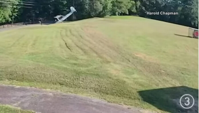 Um avião de pequeno porte capotou ao tentar pousar em um jardim residencial na cidade de Pelzer, na Carolina do Sul (EUA), nesta segunda-feira (30/6). A cena foi registrada por uma câmera de segurança de uma casa próxima ao local.