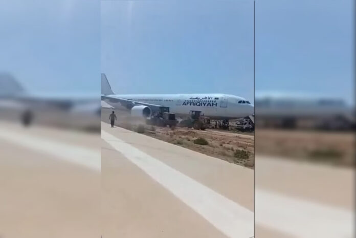 Um avião da companhia Afriqiyah Airways, modelo Airbus A330, perdeu o controle e saiu da pista durante a decolagem no aeroporto de Beida, na Líbia, neste sábado (24/5). De acordo com a empresa responsável, todos os passageiros ficaram bem e a aeronave não teve avarias.