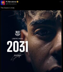 Lamine Yamal, joia de 17 anos do Barcelona, teve o contrato renovado. Através das redes sociais, o clube espanhol anunciou, nesta terça-feira (27/5), que o novo vínculo com o atacante vai até 2031.