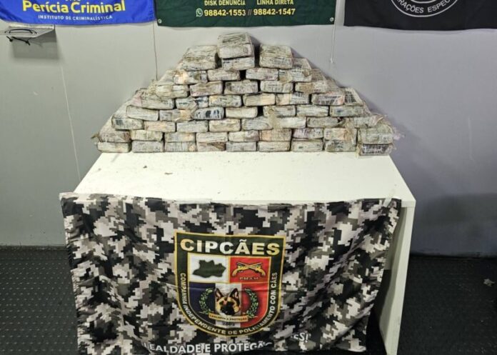 No local, foram encontrados sacos que continham 53 tabletes de entorpecentes. Ao todo, após a verificação, foram contabilizados 63,2 quilos de cocaína. Os responsáveis pela droga não foram localizados.