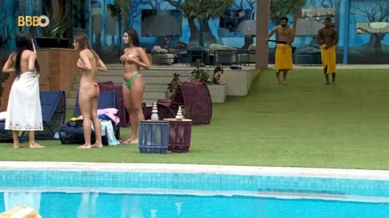 Davi convidou seus amigos do BBB 24 a tirarem a roupa para pularem pelados na piscina no início da tarde desta quarta-feira (24). A atitude foi uma promessa do grupo “fadas” caso completassem 80 dias de programa.