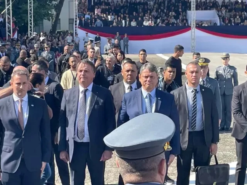 O ex-presidente chegou a São Paulo nessa quinta-feira (1º/6) e acompanhou o governador Tarcísio de Freitas (Republicanos) e o secretário de Segurança Pública, Guilherme Derrite (PL), na formatura de 187 alunos-oficiais da Academia da Polícia Militar do Barro Branco, na zona norte da capital paulista.