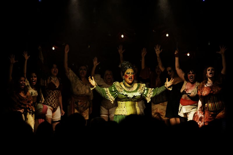 Com 17 artistas em cena, a peça conta com Vivian Oliveira, Sarah Margarido, Andira Angeli, Julia Kahane, Thayná Liartes, Fernanda Seixas, Daphne Pompeu, Daniely Peinado, Vanja Poty, Ana Oliveira, Bruna Pollari, Allícia Castro, Taciano Soares e Eric Lima, além dos músicos Yago Reis, Guilherme Bonates e Stivisson Menezes.
