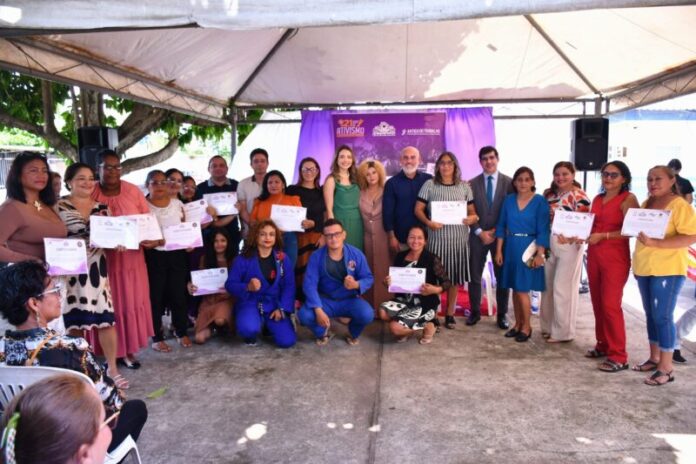Na ocasião, foram entregues certificados às participantes dos cursos de manipulação caseira de essências cosméticas e do projeto de defesa pessoal “Ninguém segura, mulheres seguras: autodefesa como direito e empoderamento”, desenvolvidos em cooperação com a Universidade Federal do Amazonas e instrutores de artes marciais.