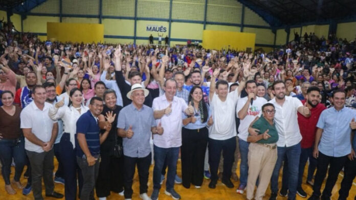 Em discurso emocionado, Macelly destacou a importância da união política em torno de Maués e agradeceu a presença das lideranças estaduais.