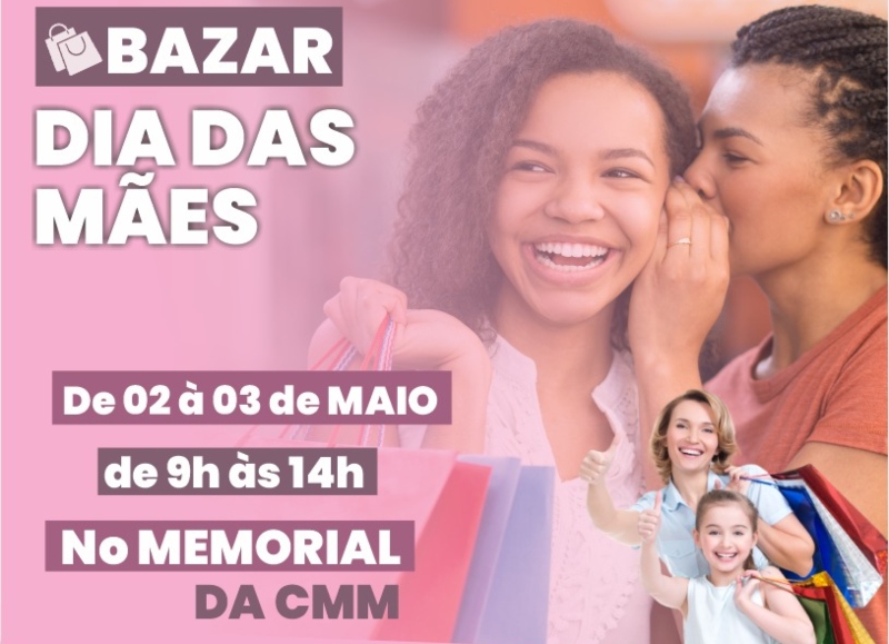 Nos dias 02 e 03 de Maio acontece o tradicional Bazar do Dia das Mães, na Câmara Municipal de Manaus (CMM), de 9h às 14h. O evento será realizado no Memorial Carlos Zamith na Casa Legislativa. O Bazar do Dia das Mães é uma realização da Câmara Municipal de Manaus e da Procuradoria Especial da Mulher com apoio da vereadora Professora Jacqueline (UB).