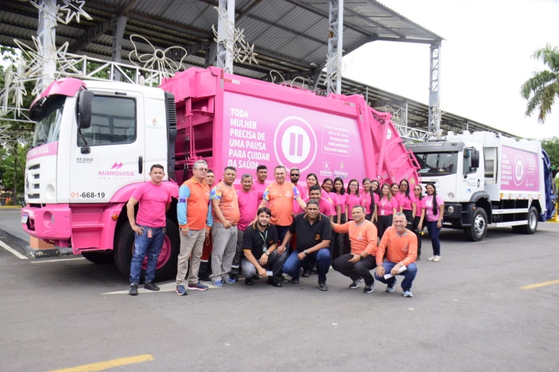A Prefeitura de Manaus, por meio da Secretaria Municipal de Limpeza Urbana (Semulsp), apresentou, nesta terça-feira, 11/10, os caminhões da limpeza pública que estampam a campanha “Outubro Rosa”, de conscientização sobre o câncer de mama e o câncer do colo do útero. Durante o mês, dois veículos adesivados e pintados na cor rosa e com informações de prevenção à doença, circulam na cidade. O secretário do órgão, Sabá Reis, acompanhou a entrega.