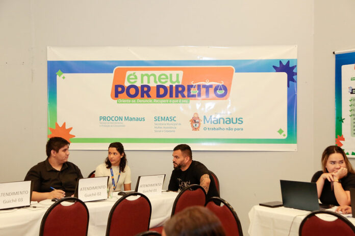 Com o objetivo de atender todas as zonas da cidade, a Prefeitura de Manaus , por meio do Serviço de Atendimento e Proteção ao Consumidor (Procon Manaus) e da Secretaria Municipal da Mulher, Assistência Social e Cidadania (Semasc), realizou, na quinta e sexta-feira, 12 e 13/6, a segunda edição da campanha “É Meu por Direito”, no shopping Grande Circular, no bairro São José Operário, na zona Leste. A ação teve como objetivo orientar a população sobre descontos indevidos nos benefícios do Instituto Nacional do Seguro Social (INSS).