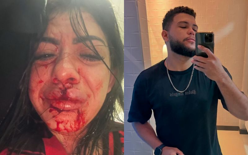 Segundo informações preliminares, a agressão aconteceu dentro do carro do casal. Kaline foi espancada com tamanha violência que teve três dentes da frente quebrados, além de apresentar o rosto desfigurado e coberto de sangue, conforme mostram imagens registradas pela própria vítima logo após o ocorrido.