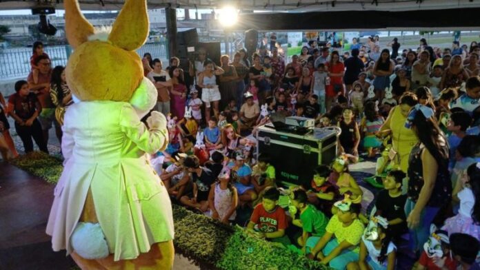 A ação começou às 17h, com atividades lúdicas, oficinas, contação de histórias, brincadeiras recreativas e o projeto Mania de Ler. O ponto alto da tarde foi a chegada do Coelhinho da Páscoa, em um desfile acompanhado por fanfarra, que encantou o público presente. A programação se encerrou por volta das 19h, com a exibição de um filme temático no Cineminha da Páscoa.