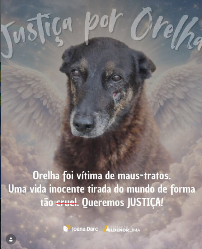 “O que fizeram com o cãozinho comunitário Orelha foi maus-tratos. Foi um crime grave, cometido por quem menos esperávamos. Que sua partida não seja em vão e que sua história desperte consciência, empatia e, principalmente, JUSTIÇA! Descanse em paz, Orelha! A sua vida importa, assim como a vida de todos os animais”, escreveu.