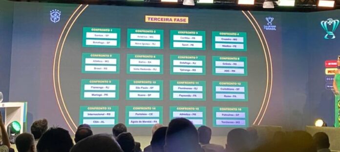 A CBF definiu nesta quarta-feira os jogos da terceira fase da Copa do Brasil, em sorteio realizado na sede da entidade, na Barra da Tijuca. Nesta fase entram os clubes que se classificaram para a Copa Libertadores, como Flamengo, Palmeiras, Internacional, Fluminense, Corinthians, Athletico, Atlético-MG e Fortaleza, o São Paulo (nono colocado no Brasileiro de 2022), Cruzeiro (campeão da Série B), Sport (vice-campeão da Copa do Nordeste e Paysandu (campeão da Copa Verde).