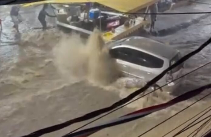 Vídeos que circulam nas redes sociais mostram ruas alagadas no Vidigal e na Rocinha, após a chuva registrada na noite desta quarta-feira (11), no Rio de Janeiro.