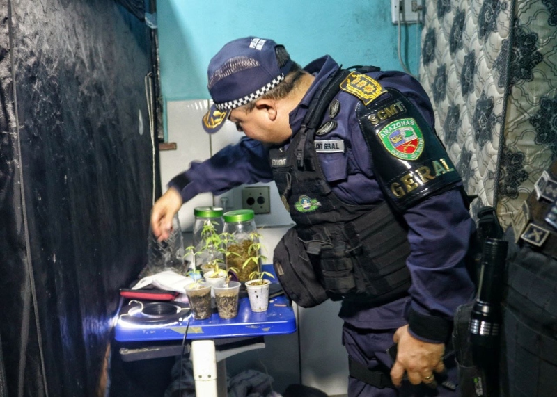 Como parte do trabalho integrado da Secretaria de Estado de Segurança Pública do Amazonas (SSP-AM), foi deflagrada na noite de quarta-feira (15/03), uma nova fase da operação Cidade Mais Segura, para prevenção e combate da criminalidade, de forma simultânea, na capital e na região Metropolitana do estado. Logo nas primeiras horas, um laboratório de cultivo de entorpecentes foi desmontado pela Polícia Militar do Amazonas (PMAM), na zona sul de Manaus. Foram apreendidos, ainda, carros, motos e armas.