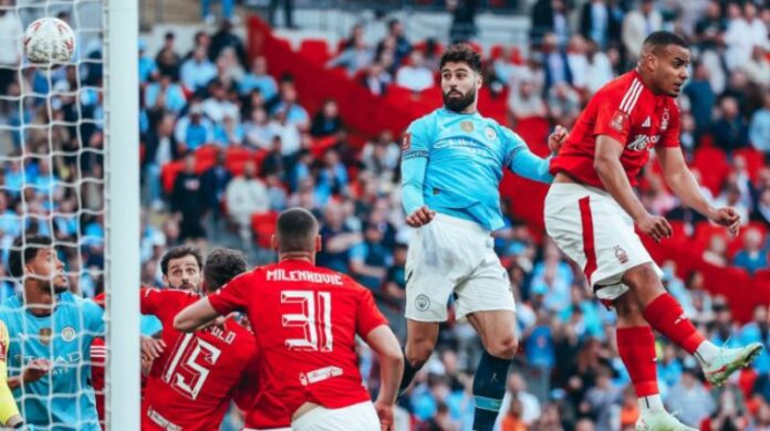 O Manchester City avançou para a final da Copa da Inglaterra ao vencer o Nottingham Forest por 2 a 0 neste domingo (27). A partida semifinal foi realizada no The City Ground, em Nottingham, e contou com gols de Rico Lewis e Josko Gvardiol para os visitantes.
