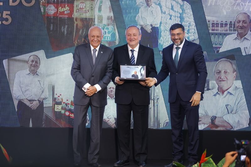 Empresário Luiz Carvalho Cruz, superintendente da J. Cruz Indústria de Bebidas Magistral, homenageado como Industrial do Ano 2025, principal reconhecimento da FIEAM, presença do governador Wilson Lima.