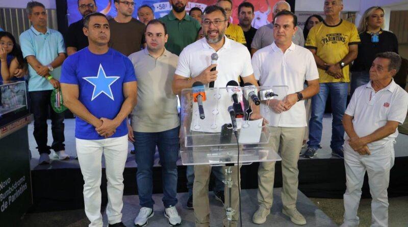 O governador Wilson Lima apresentou o cronograma para o projeto do novo Bumbódromo de Parintins a 369 quilômetros de Manaus, durante o lançamento oficial do 58º Festival de Parintins 2025, na Ilha Tupinambarama.