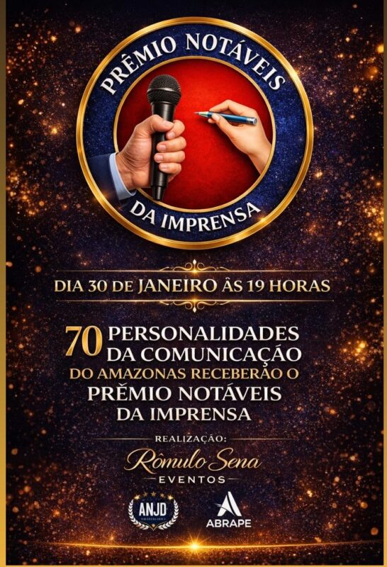 No dia 30 de janeiro 2026, o escritor Romulo Sena realizará o Prêmio Os Notáveis da Imprensa, homenageando comunicadores que levam a mensagem de informação e esperança à população.