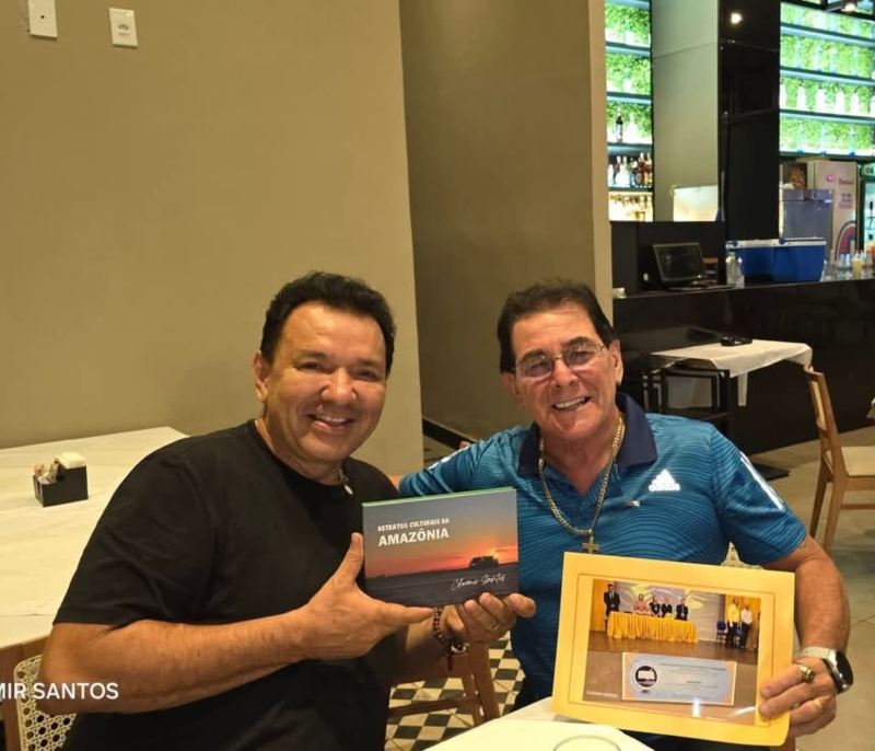 Enconto com Tony Medeiros presidente da Concultura MAO no Manauara Shopping , mostrando meu livro RETRATOS CULTURAIS DA AMAZÔNIA premiado pela Lei Paulo Gustavo.