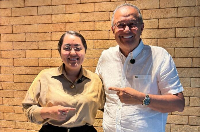 Prefeita de Maués, Macelly Veras, ao lado do deputado federal Silas Câmara durante encontro que confirmou o repasse de R$ 2,5 milhões em emendas parlamentares para investimentos em saúde e assistência social no município