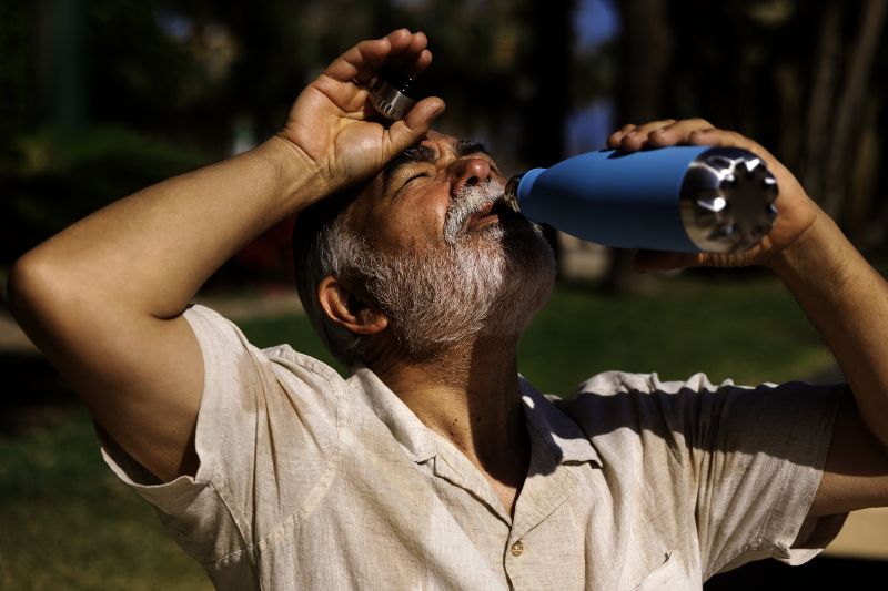 “Em situações extremas de calor é possível desenvolver alterações nas funções renais, insolação, queda de pressão, desmaios e hipertermia, que ocorre quando o corpo fica com uma temperatura mais elevada do que normal e se não for tratada da forma correta, pode levar a morte”, alerta Dr. Marcos.