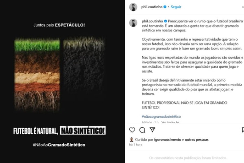 - Eles usaram as redes sociais para divulgar a campanha intitulada “Não Ao Gramado Sintético”;