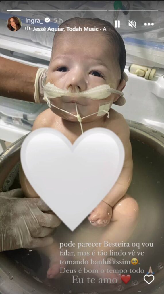 “Pode parecer besteira o que eu vou falar, mas é tão lindo ver você tomando banho assim. Deus é bom o tempo todo. Eu te amo”, escreveu Ingra nos Stories do Instagram na época.