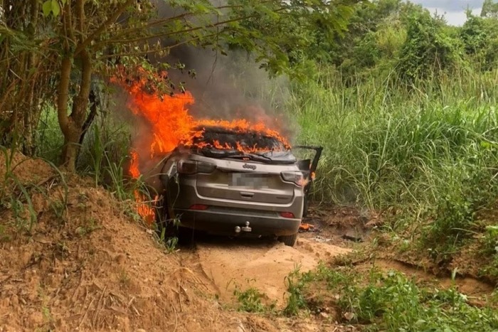 O carro queimado, um Jeep Compass, estava no nome da esposa do policial. Ele estava desaparecido desde sexta-feira (1º/11).