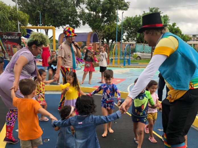 Com o tema “Infância e Sustentabilidade”, a creche municipal Magdalena Arce Daou, da Prefeitura de Manaus, participou, nesta sexta-feira, 30/5, da 1ª edição do “Dia Mundial do Brincar”. A atividade, coordenada no Brasil pela organização sem fins lucrativos Aliança pela Infância, foi realizada na praça molhada do Cajual, no bairro Morro da Liberdade, zona Sul da capital, e contou com apresentações culturais do grupo de arte e cultura Allegriah, além de oficinas de pipa de papelão, balões e um piquenique.