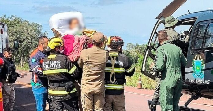 A criança, de apenas 6 anos, socorrida em estado grave ao se ferir no acidente entre um caminhão e um ônibus de viagem, estria com um pedaço de ferro cravado em seu corpo. O caso aconteceu nas primeiras da manhã de hoje (15), na BR-262, em Corumbá, cidade localizada a 429km de Campo Grande.