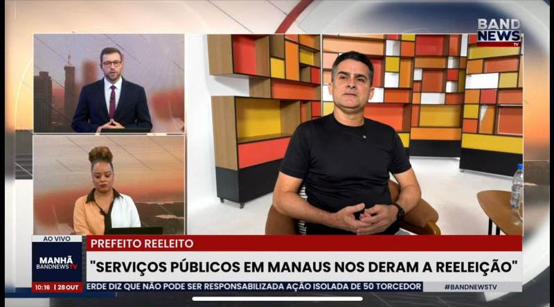 Na manhã desta segunda-feira (28/10), o prefeito reeleito de Manaus, David Almeida (Avante), falou ao Jornal Manhã BandNews sobre os fatores que considera decisivos para sua reeleição. Segundo ele, a qualidade dos serviços públicos prestados ao longo de seu primeiro mandato foi fundamental para conquistar novamente a confiança dos eleitores.