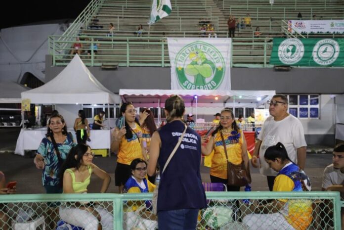 A Defensoria Pública do Estado do Amazonas (DPE-AM) realizou, na noite deste Sábado Gordo de Carnaval, dia 14, uma ação educativa e de conscientização durante o desfile das Escolas de Samba do Grupo Especial, no Sambódromo de Manaus. Defensoras públicas e servidores distribuíram material informativo da campanha “Defensoria na Avenida” e orientaram o público sobre os serviços da instituição.