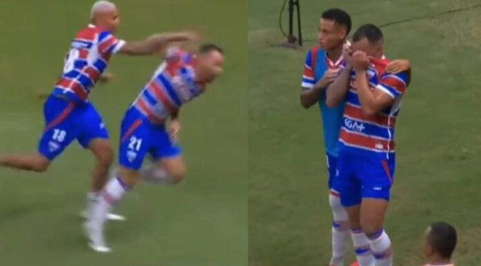Uma cena inusitada marcou o empate entre Fortaleza e Internacional por 0 a 0 no último domingo (13), pela terceira rodada do Campeonato Brasileiro. Moisés, atacante da equipe cearense, se lesionou depois de ser empurrado por Deyverson durante a comemoração de um gol que acabou sendo anulado pelo VAR.