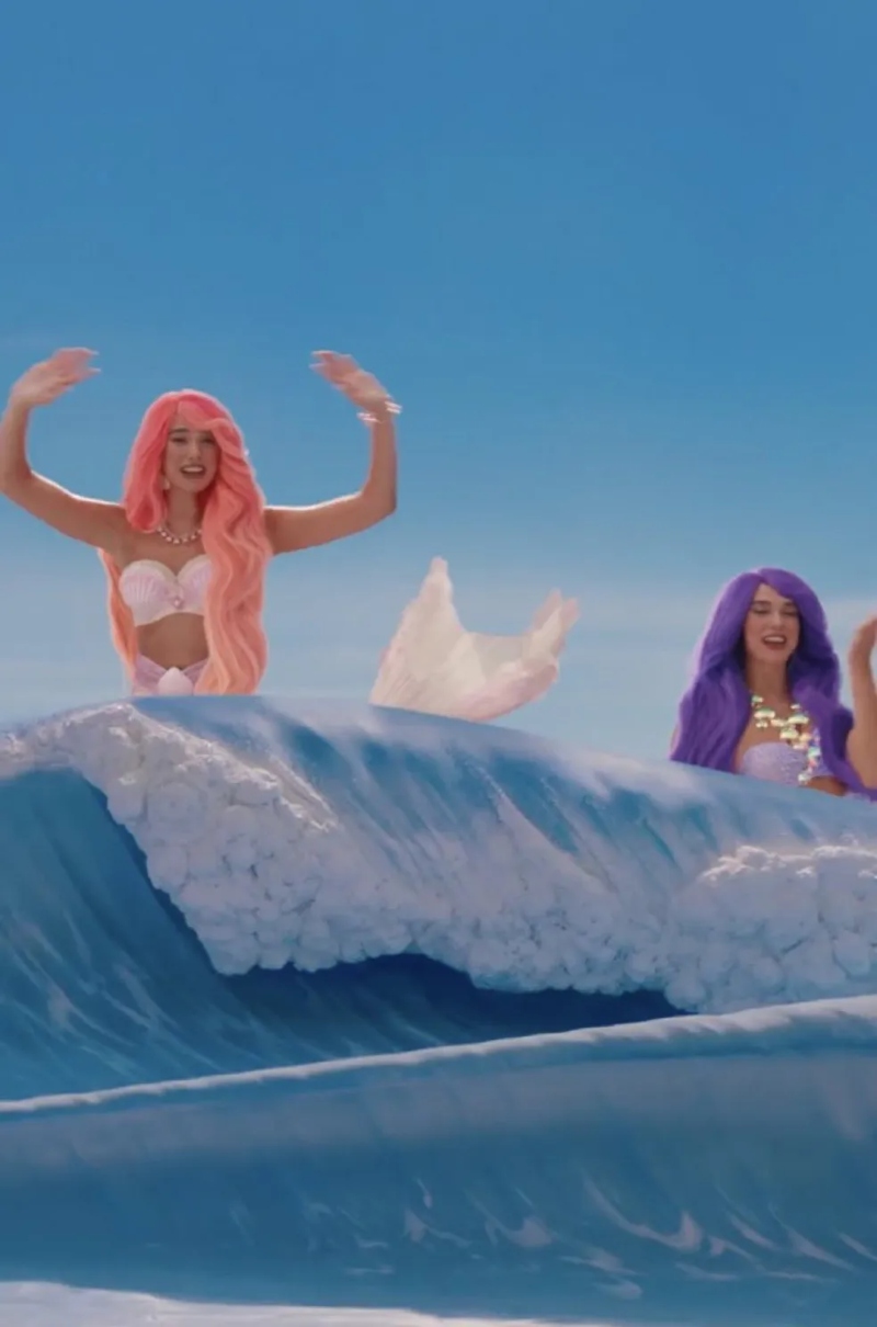 Dua já havia sido anunciada como parte do elenco e aparecido na série de cartazes que traz, em cada peça, um personagem do filme. Essa, porém, é a primeira vez que ela surge em um dos teasers encenando a “barbie sereia”. No vídeo, é possível observar duas sereias com o rosto da artista, uma com o cabelo rosa, e a outra com os fios roxos.