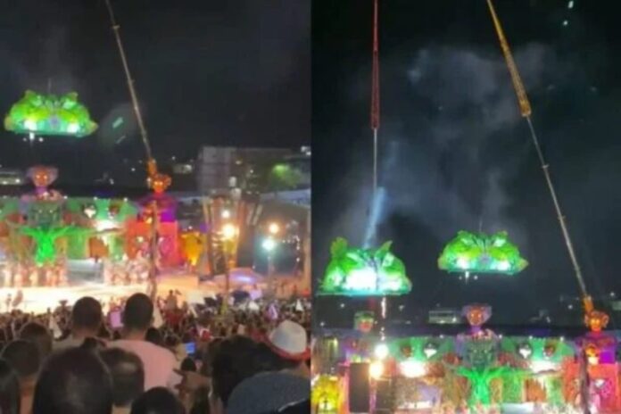 O acidente acontece na noite de domingo (27) por volta das 22h30. O guindaste que suspendia um cesto com 23 brincantes partiu-se com o peso, assim, despencando a estrutura erguida por, aproximadamente, 10 metros.