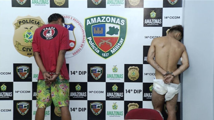 Dupla criminosa foi presa, na noite desta terça-feira (20/07), após invadir casa de policial militar e furtar a arma em posse do agente. O crime ocorreu no bairro Nova Floresta, zona leste de Manaus. A dupla foi capturada pela população enquanto praticava arrastão pelas redondezas.