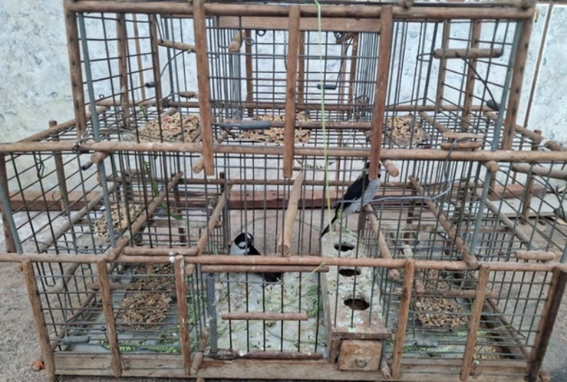 Durante patrulhamento da PM Ambiental no bairro Parque Alexandrina, município de Presidente Prudente, policiais avistaram duas gaiolas penduradas próximas à casa de um homem conhecido no meio policial por criar pássaros nativos de forma clandestina.