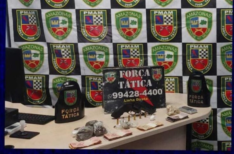 A Polícia Militar do Amazonas (PMAM), por meio da Força Tática, prendeu um homem, de 36 anos, por porte ilegal de arma de fogo e tráfico de drogas. A prisão ocorreu na noite de segunda-feira (25/09), durante a Operação Paz em Rio Preto da Eva (a 57 quilômetros de Manaus).